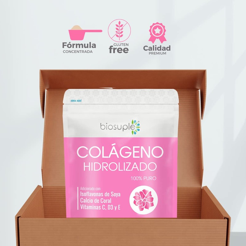 BIOSUPLE | Colágeno Hidrolizado adicionado con Isoflavonas de Soya, Calcio de Coral y Vitaminas C, D3 y E.Polvo 300 g, sabor Natural – Suplemento Alimenticio.