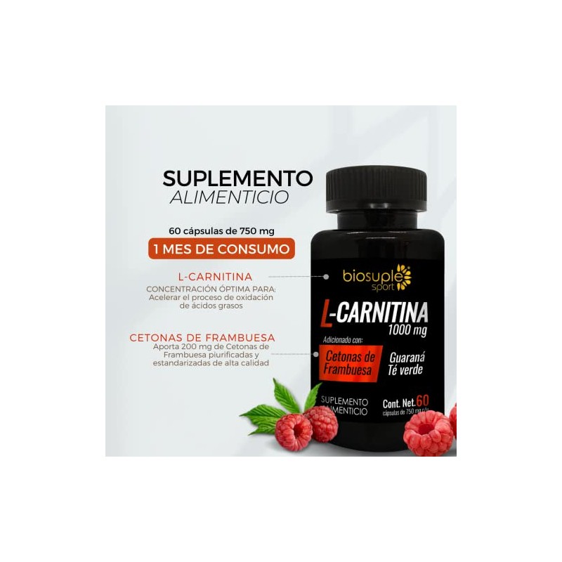 🌟 ⭐ BIOSUPLE | L-Carnitina adicionada con Cetonas de Frambuesa, Guaraná y Té Verde. – Suplemento Alimenticio, Frasco con 60 cápsulas de 750 mg c/u. ⭐ 🌟