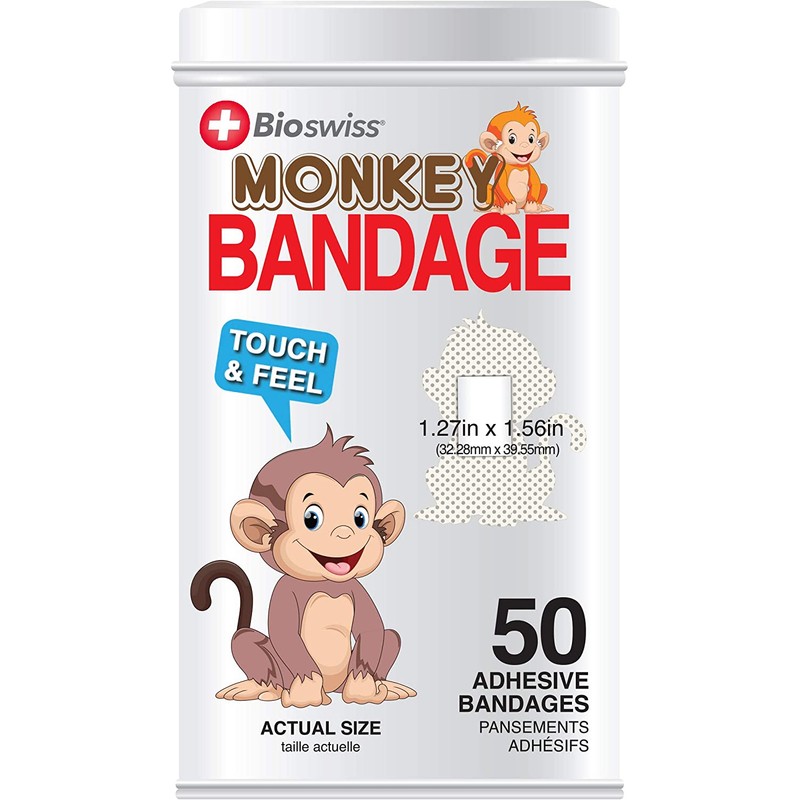 BioSwiss Novelty Bandages Collectable Tin, Self-Adhesive Funny First Aid Bandages, Novelty Gag Gift (Monkeys)