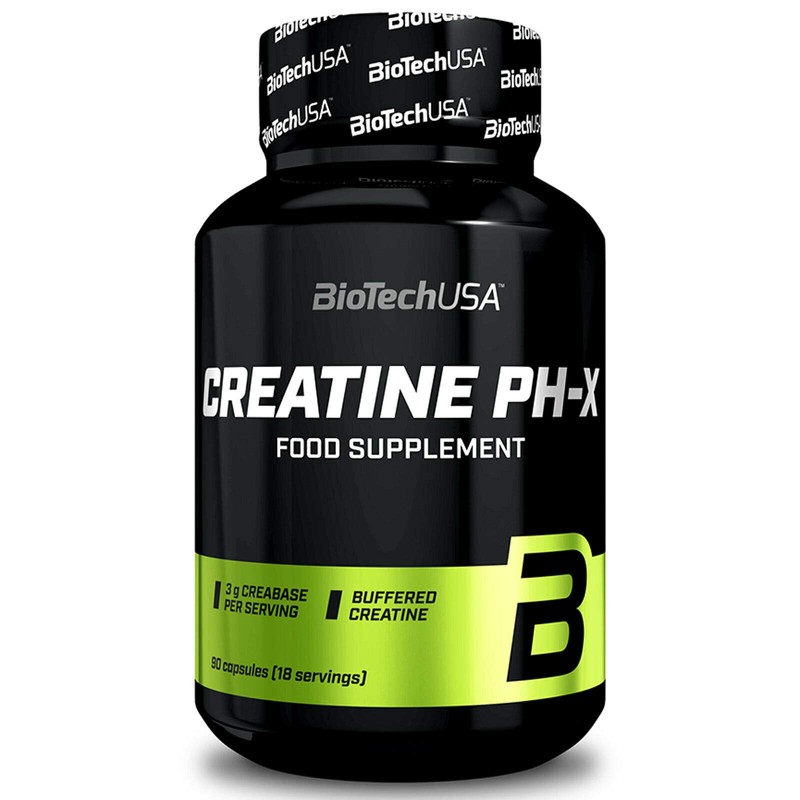 BIOTECH CREATINE PH-X is your one source of world-class quality buffered creatine in capsule form for increasing muscle strength and endurance, without causing digestive troubles such as bloating and cramping. Creatine PH-X is a buffered creatine monohydrate, more readily and easily absorbed by the body compared to regular creatine monohydrate. Buffered creatine only takes minutes to get fully absorbed by the body, allowing you to feel its performance-enhancing effects quickly and without delay. Creatine PH-X has a higher pH content, especially once it gets combined with water. This allows it to get dissolved and digested much faster by the body. It also doesn't cause digestive troubles such as cramping, bloating, and water retention, unlike traditional creatine formulas. Creatine supplementation is made more convenient, effective and easier on the stomach with Biotech Creatine PH-X.