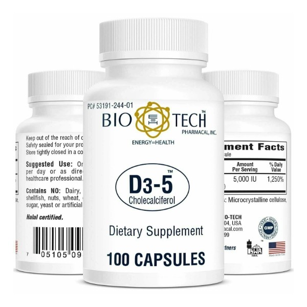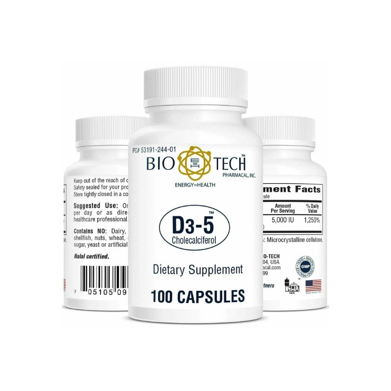 Biotech Vitamin D3 5 Cholecalciferol 5000IU Bone & Joint Support 100ct 2 Pack