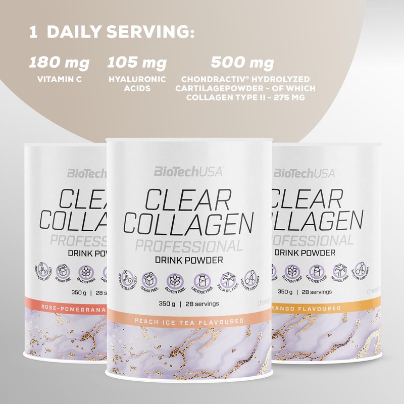 BioTechUSA BioTechUSA Clear Collagen Professional | Flavoured Drink Powder | 20,275 mg Type I & II Collagen | Hyaluronic Acid | Vitamins & Minerals | Sugar-Free | Gluten-Free, 350g, Mango