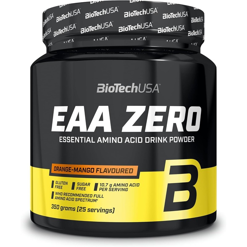 BioTechUSA BioTechUSA EAA Zero - Essential Amino Acid Power | 7160mg EAA/Serving | WHO Recommended Ratio | Sugar-Free, Gluten-Free, 350 g, Orange-Mango