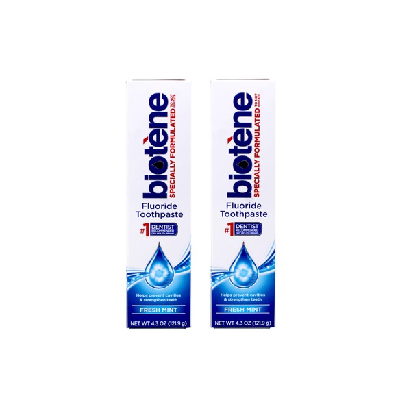 biotène Gentle Formula Fluoride Toothpaste, Fresh Mint 4.3 oz (Pack of 2)