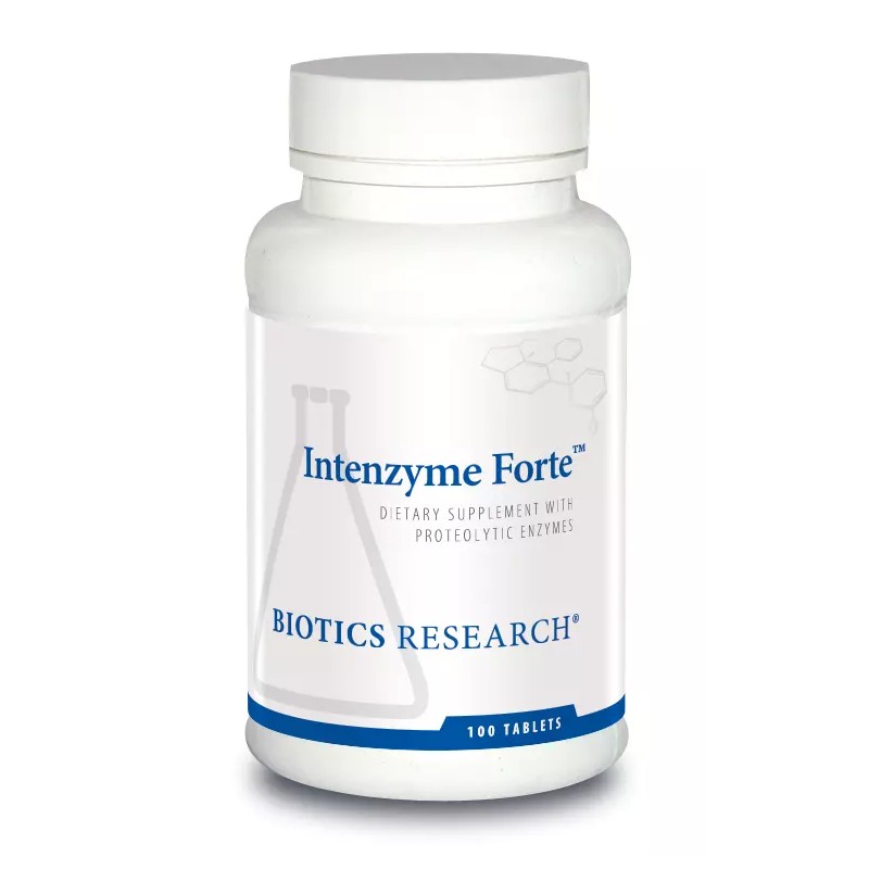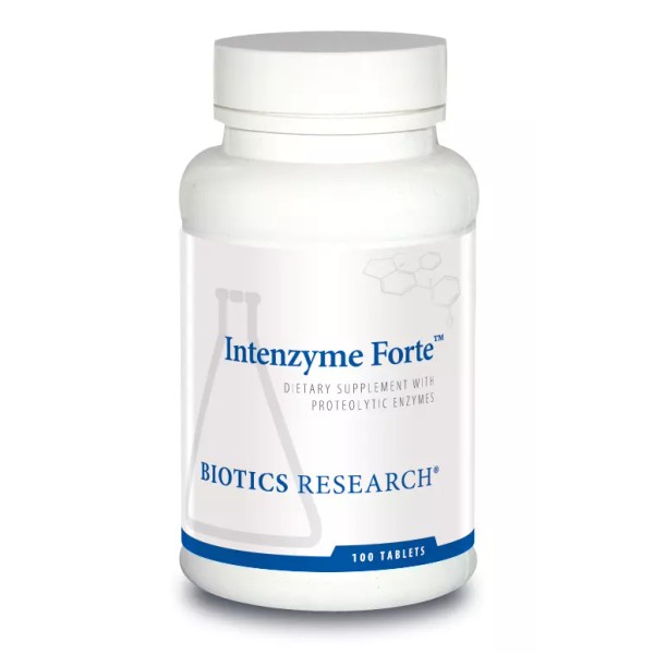 A broad spectrum proteolytic enzyme formulation that supports the numerous protein metabolism pathways. Proteolytic enzymes are capable of exerting influence over a variety of physiological and biochemical processes. Benefits of Intenzyme Forte include its effect on muscle soreness and discomfort due to overexertion, the support of hormone processing, as well as providing support for healthy digestive, immune and circulatory function.