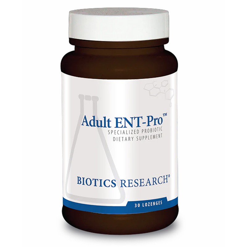NEW, UNOPENED Factory sealed bottle of Biotics Research Adult ENT-Pro 30 Lozenges Probiotics for Oral and Otolaryngeal Health.