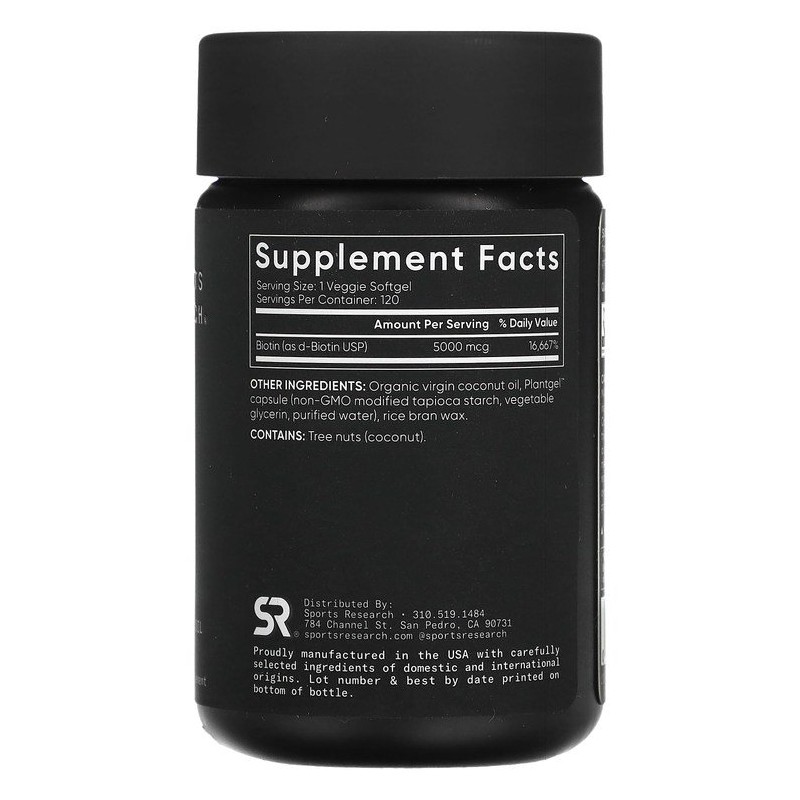 Biotin 5000mcg veggie softgels with coconut oil, 120 tablets