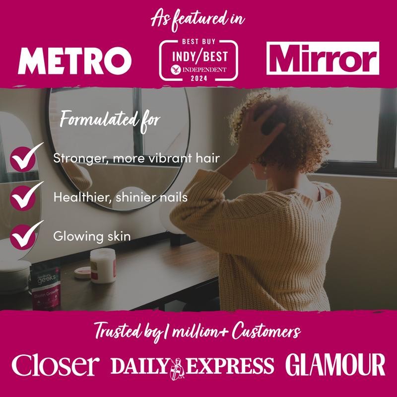 💊 Super strength biotinBiotin is an essential vitamin for hair, skin & nail nutrition. Biotin is water-soluble meaning your body only stores what it needs. Everyone’s body is different, so we provide super strength Biotin (at safe levels) and your body will absorb what it requires and wee the rest out.