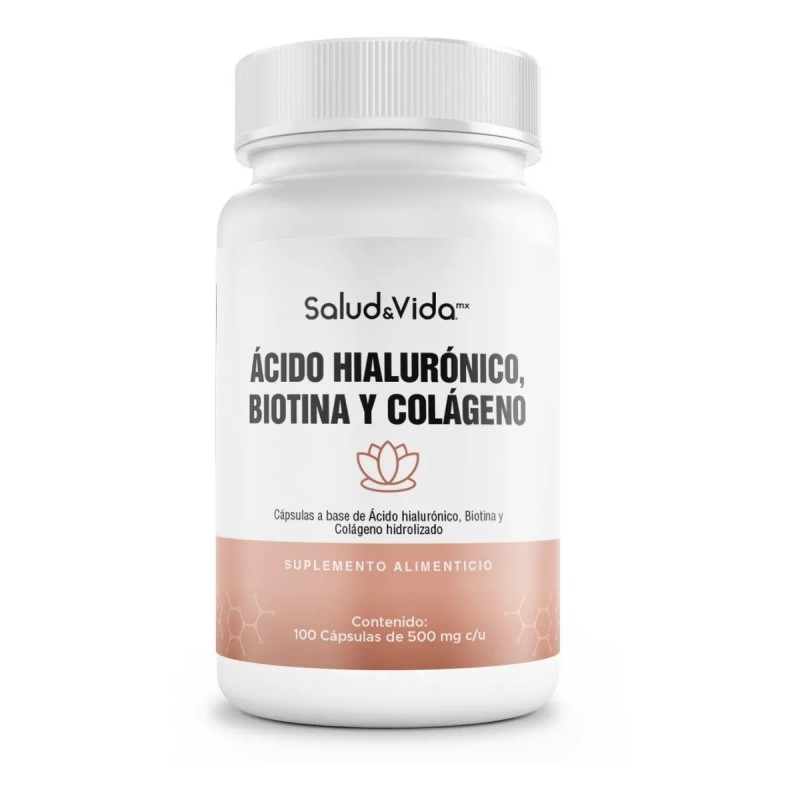 Biotina, Ácido Hialurónico Y Colágeno, 100 Cápsulas 500mg