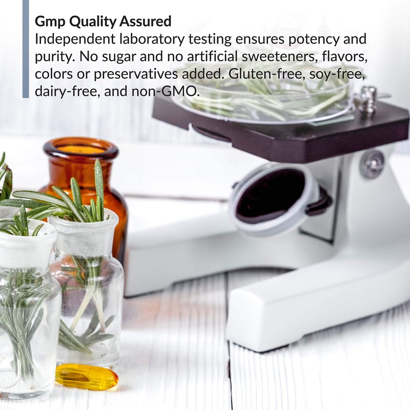 - GMP QUALITY ASSURED. Independent laboratory testing ensures potency and purity. No sugar and no artificial sweeteners, flavors, colors or preservatives added. Gluten-free, soy-free, dairy-free, and non-GMO.