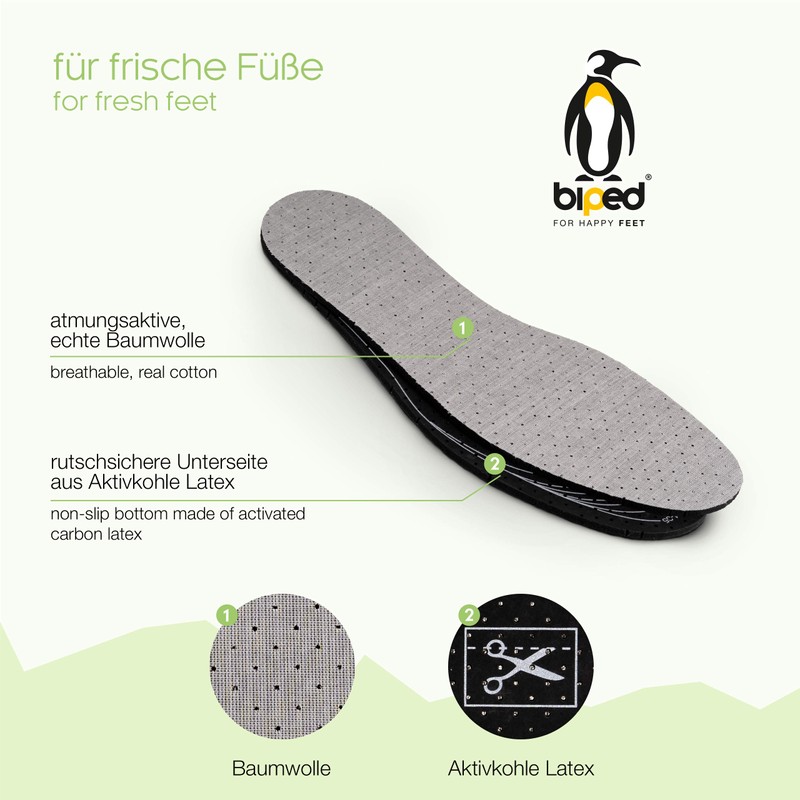 - biped Antibacterial insoles with activated carbon regulate moisture and reduce sweating in the shoe
