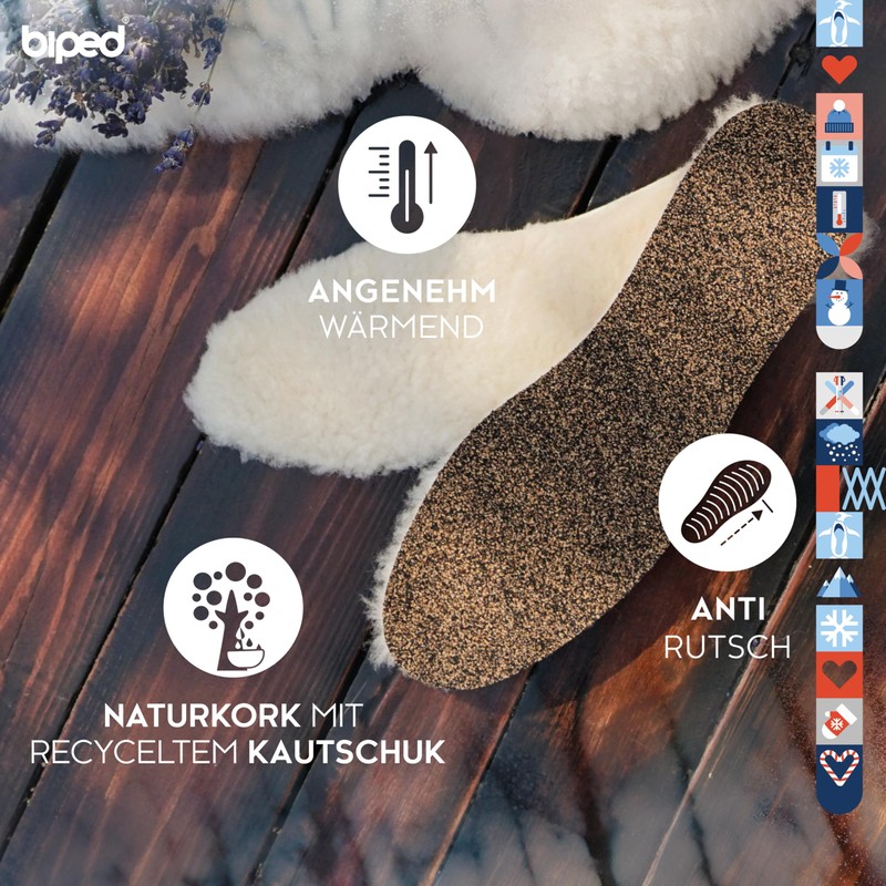 - BIPED Lambskin soles made of genuine undyed natural fur - cuddly soft insoles for shoes, boots, sports and hiking shoes