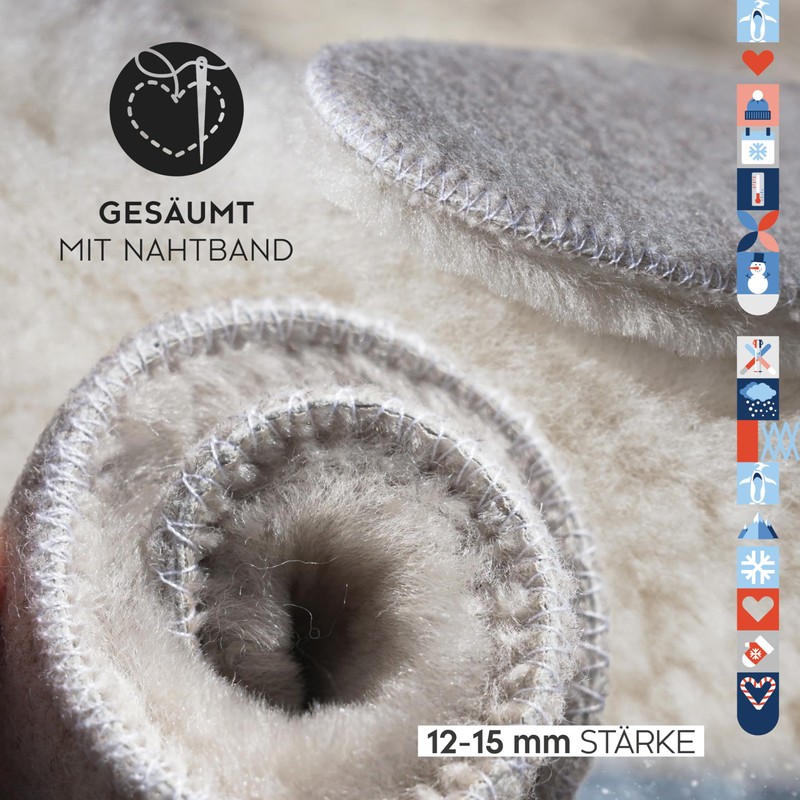 The top is made of high-quality dense natural fur, so no sole is similar to others and the height of the lambskin of between 16 and 19 millimetres can vary slightly. Lambskin is pleasantly soft and does not scratch.