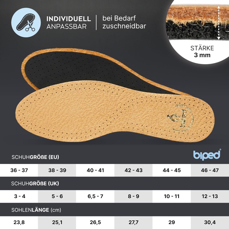 Biped Z1724 leather insoles with activated carbon, 3 pairs. - Brown - 40-41