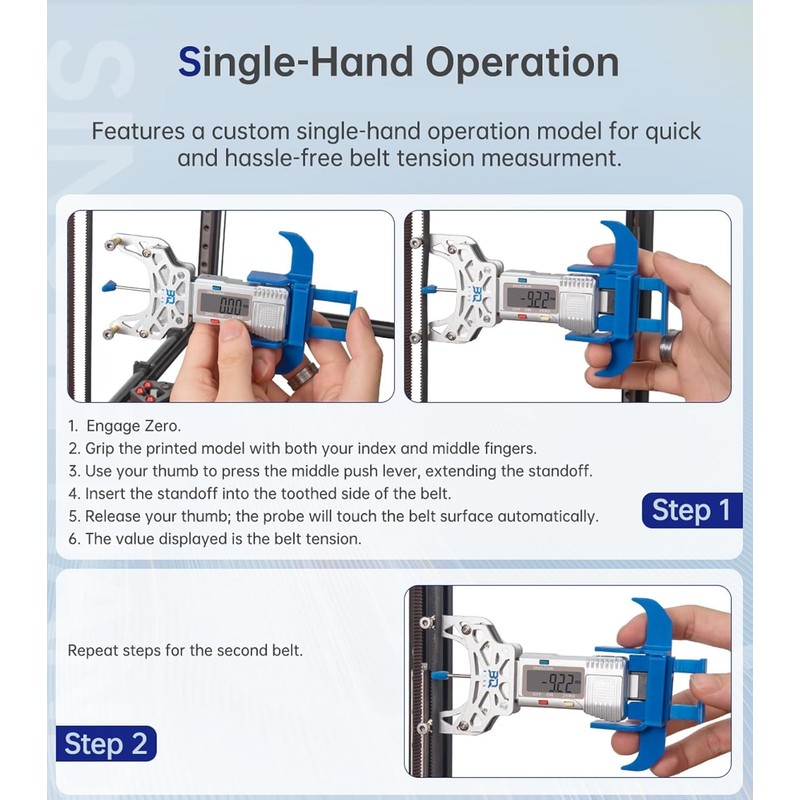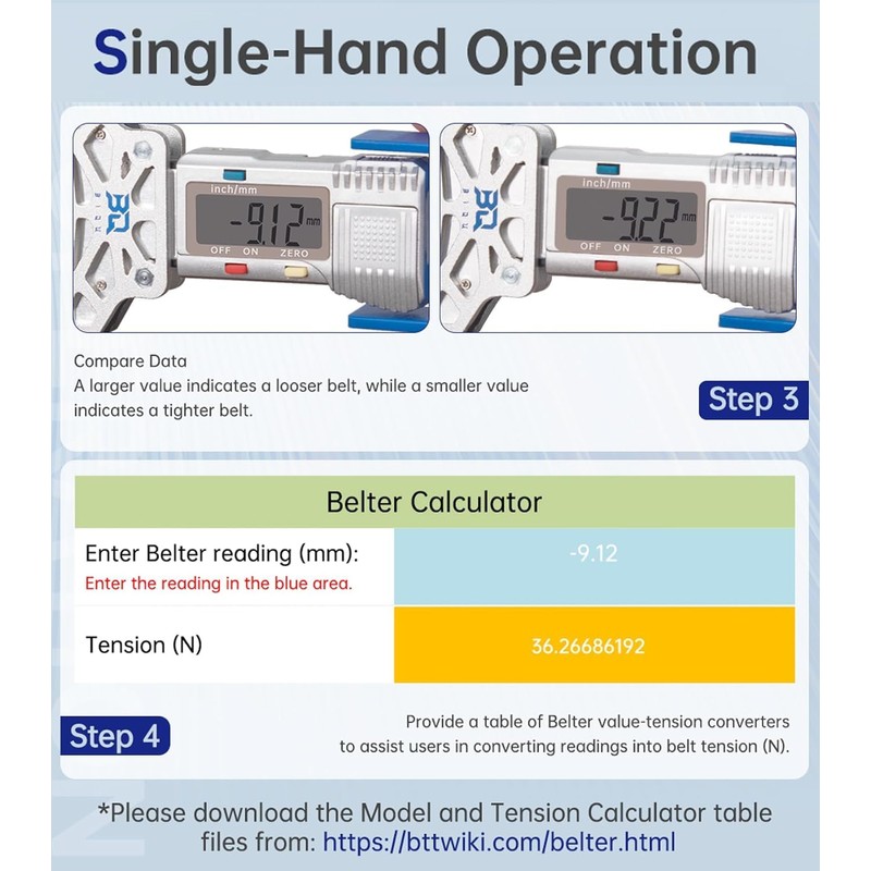 • ONE HAND OPERATION BIQU provides the stl file for a custom one hand operating model for quick and hassle-free measurement of belt tension, making the belt tension gauge super easy to use. Please download the file on btt wiki / belter.