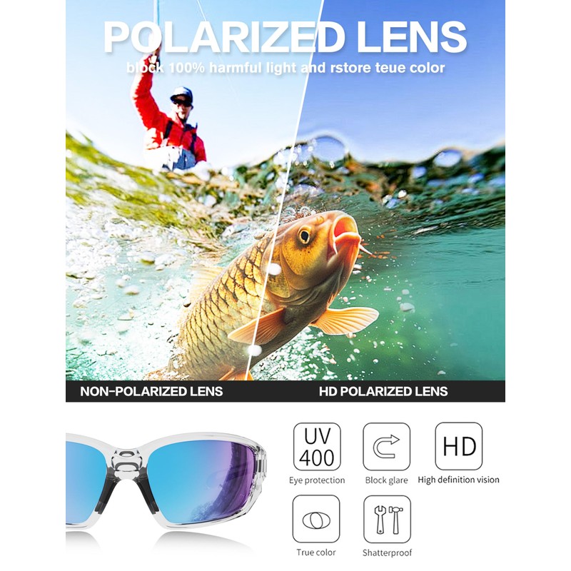 - Polarized TAC Lenses: the high-grade, scratch-resistant lenses of the polarized fishing sunglasses offer over 99% UV400 protection, enhance contrast, reduce glare, and provide a clearer, sharper view during outdoor activities, ensuring comfort and eye health.