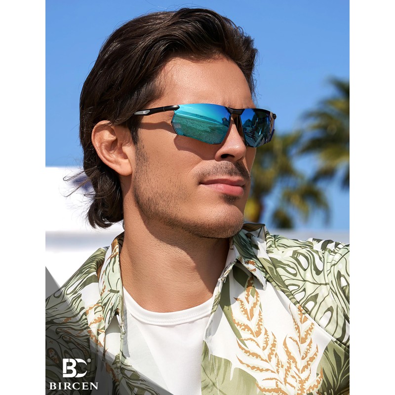 BIRCEN Mens Sunglasses Polarized UV Protection: Sport Shades for Men Driving Fishing with Al-Mg Metal Frame