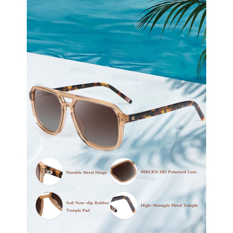 BIRCEN Polarized Trendy Sunglasses for Women - Men UV Protection Acetate Square Aviator Shades