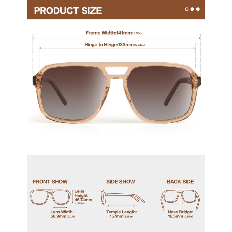 - Classic Design: Featuring a retro square aviator frame, these sunglasses are designed to flatter both large and small face shapes, enhancing your overall look. Perfectly blending fashion and function, they add a trendy edge to any outfit. Whether you’re going for a casual vibe or a more polished style, these polarized women’s aviator sunglasses are the perfect finishing touch.