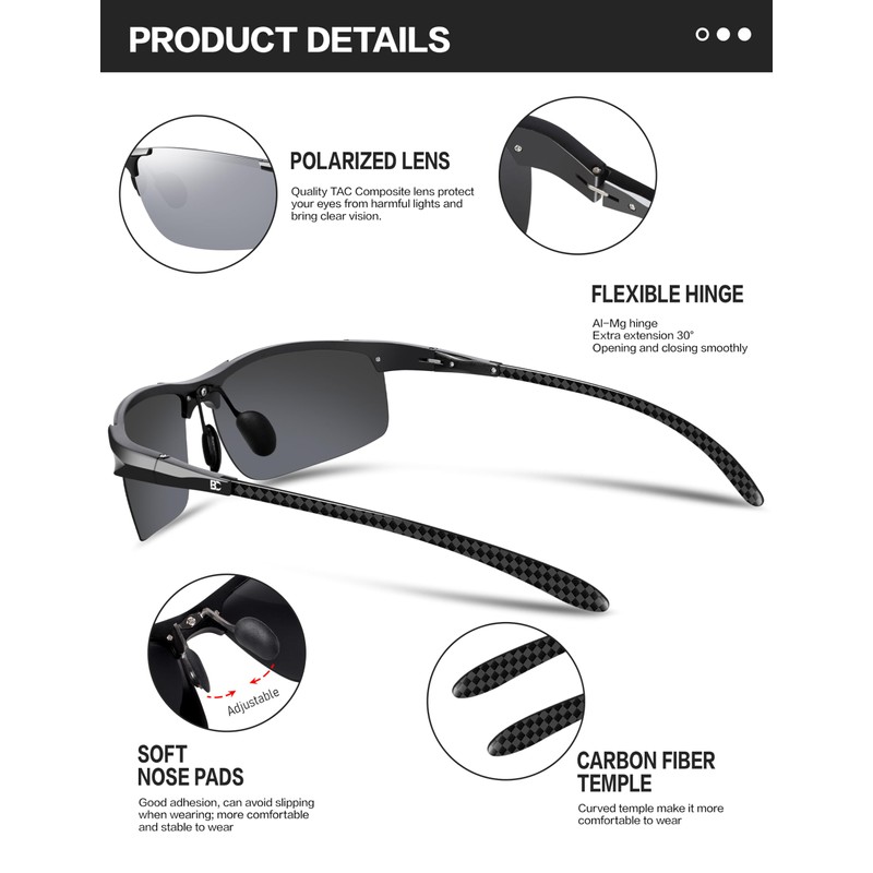 Bircenpro Polarised sunglasses for men: UV protection carbon fibre Temple sunglasses for sports and driving