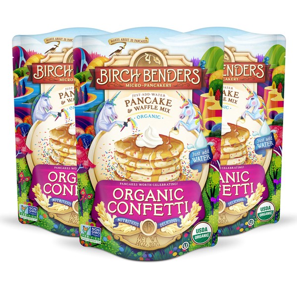 Birch Benders Organic Confetti Just-Add-Water Pancake & Waffle Mix, 3 Pack (14oz Each), 42 Oz