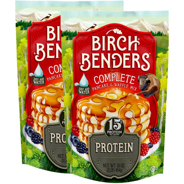 - 2 - 16 oz pouches of Birch Benders Protein Pancake and Waffle Mix