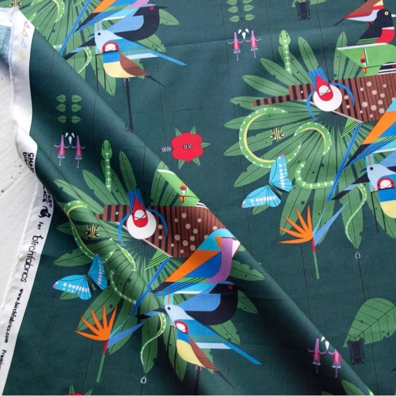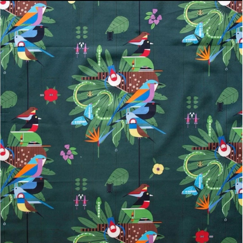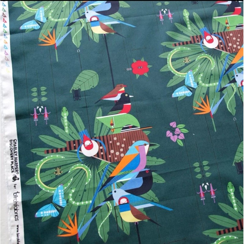 Birch Fabrics Charley Harper "Discovery Place" Main Birds Poplin Fabric•Org*1yd