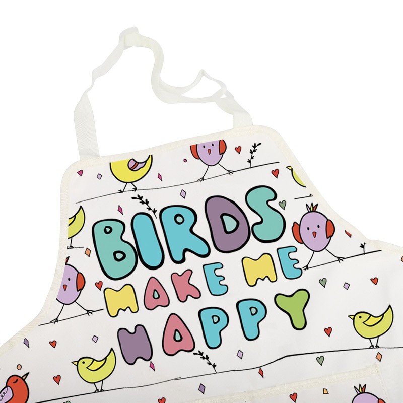 - Material: This Birds Make Me Happy Apron made of thickened waterproof and oil resistant materials, soft and comfortable, printed with high-quality pictures and text.