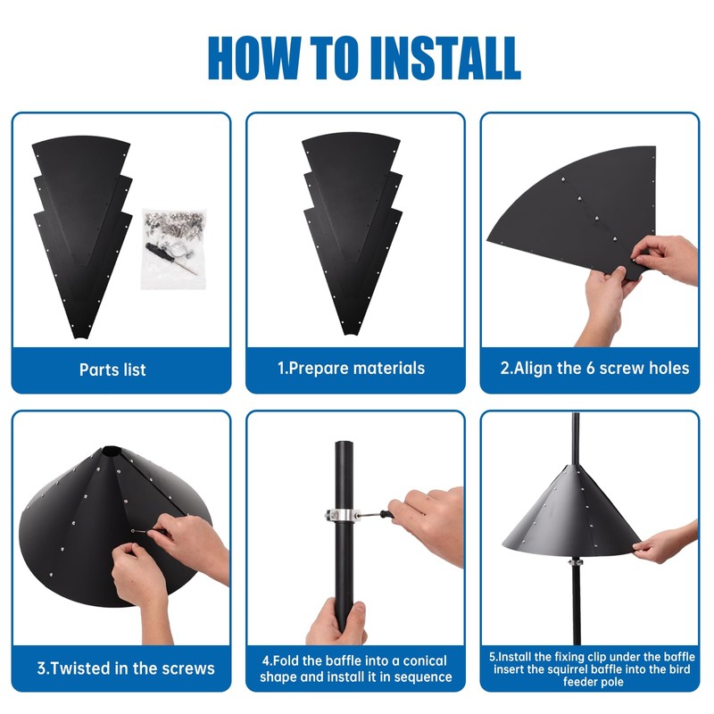 • ✿SQUIRREL-PROOF DESIGN: The Squirrel Baffle is made of steel for durability and a smooth finish that keeps squirrels away from bird feeders and birdhouses, providing safe and ample feeding space for small birds.
