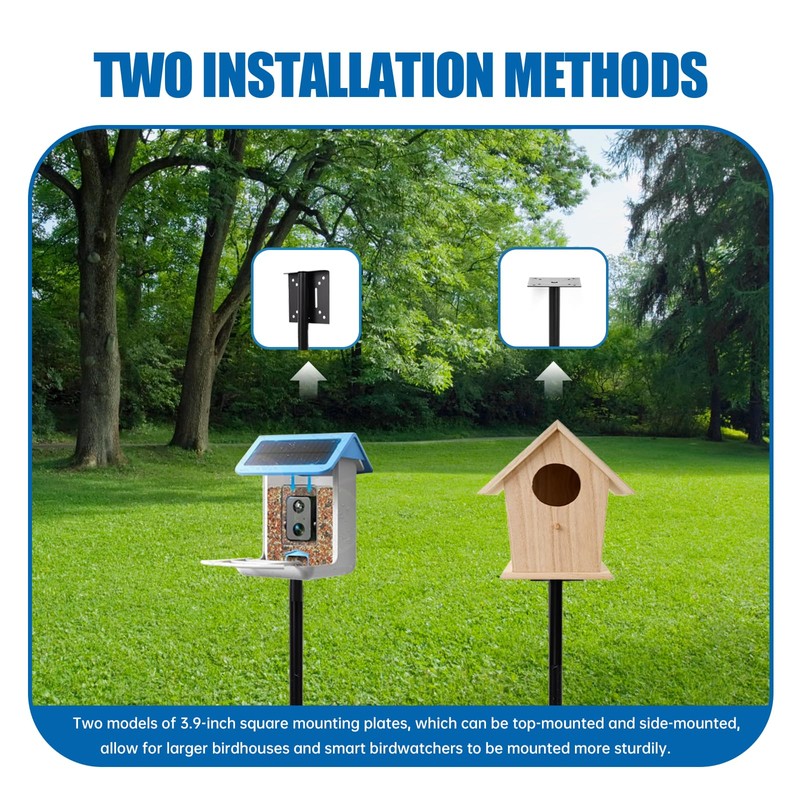 • ✿VERSATILE POLE SET: The bird feeder pole features 4 shepherd hooks and 2 types of birdhouse mounting plates, giving you the freedom to decorate it with hummingbird wind chime, lanterns, flower pots,blue bird house,bird buddy and more, making it both functional and beautiful. Fill your garden with nature's melodies and vibrancy.