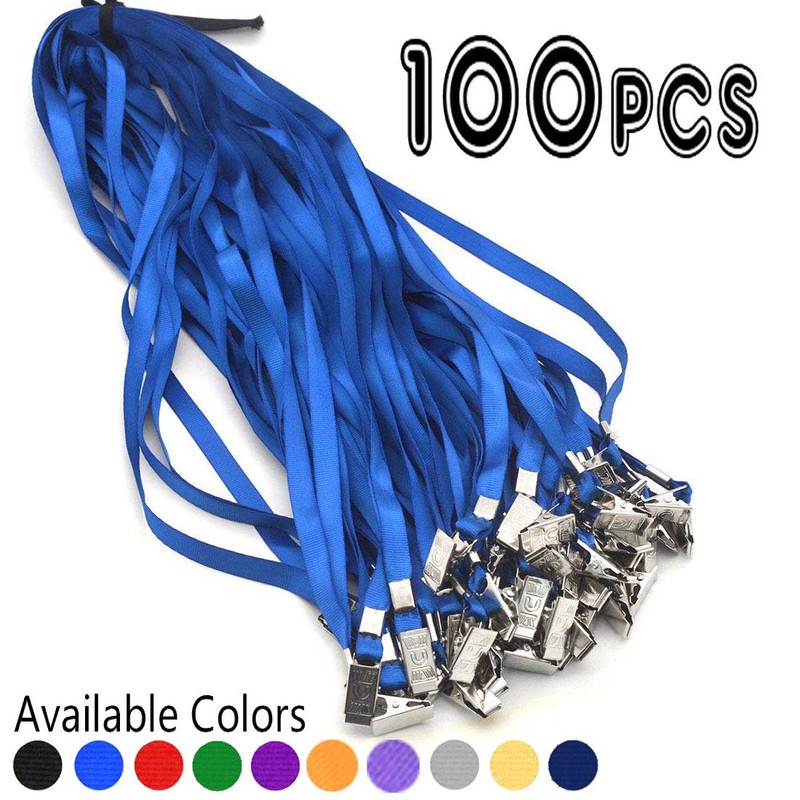 - INCLUDES: 100 pieces of flat lanyards,These woven lanyards are lightweight, yet strong. Neck strap is 34", tie knot or loop to shorten.