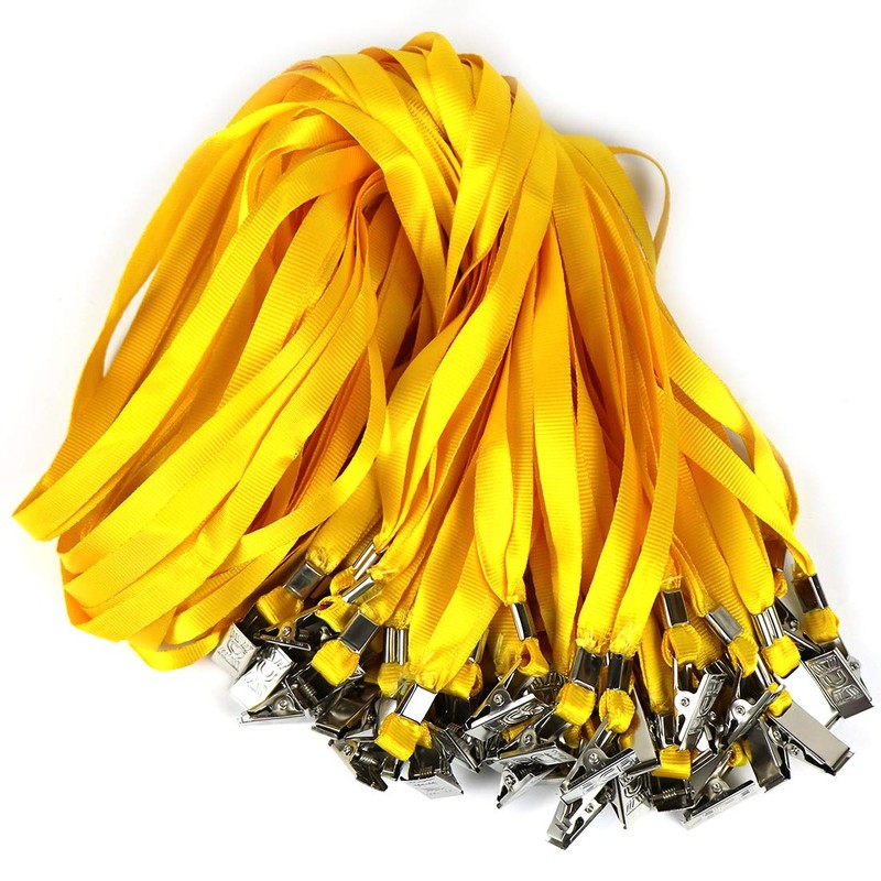 Bird Fiy Yellow Lanyards 100 Pack 34" Premium Lanyard Bulldog Clips Bulk Nylon Flat Lanyard with Badge Clip (Yellow, 100 Pack)