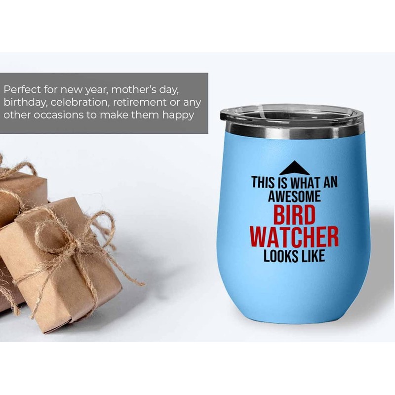 Bird Lover Blue Edition Wine Tumbler 12oz - Awsome Bird Watcher Looks Like - Hummingbird Nest Cage Parrot Dad Gardening Outdoor Birdwatcher Feeder