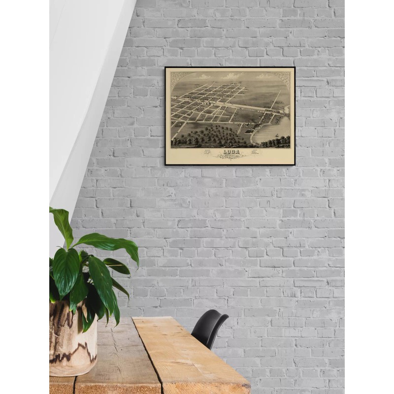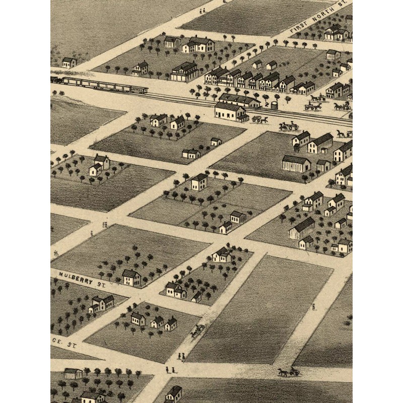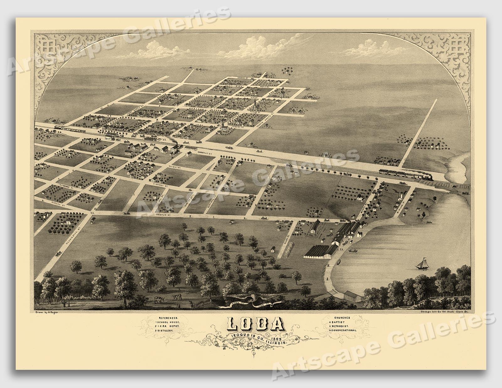 Bird's Eye View 1869 Loda Illinois Vintage Style City Map - 18x24
