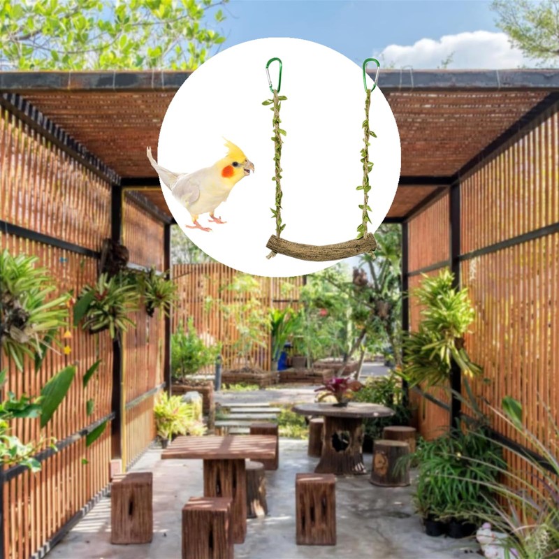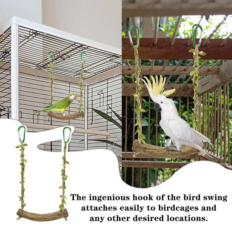 - Design Vision: The bird swing embodies the essence of professional design and innovative craftsmanship. Adorned with lifelike artificial leaves, it elevates the ambiance of your bird's abode, fostering a more authentic and enchanting environment. This sanctuary encourages natural movements, offering a cozy retreat for your pet to thrive.