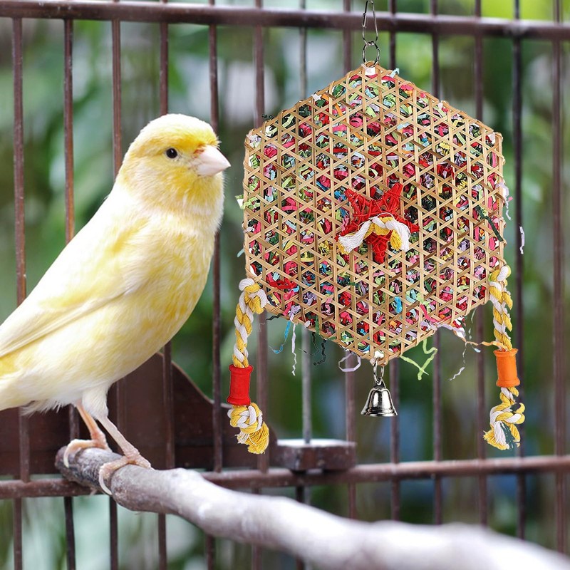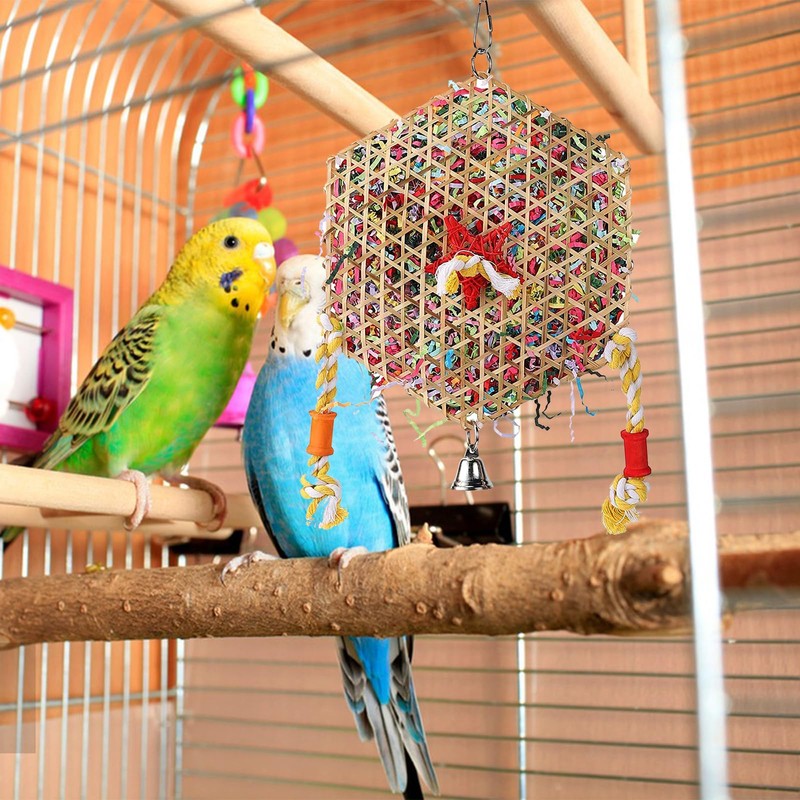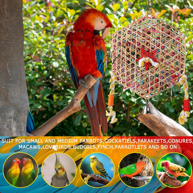 - 【Unique Bird Toys】This food weaving shredding bird toy with brightly coloured, food safe ribbons will have your companion shredding, picking and grooming for hours. Chewing and shredding is a natural behaviour associated with foraging and nesting, and it promotes your bird's physical and emotional health, as well as giving you a bit of inspiration