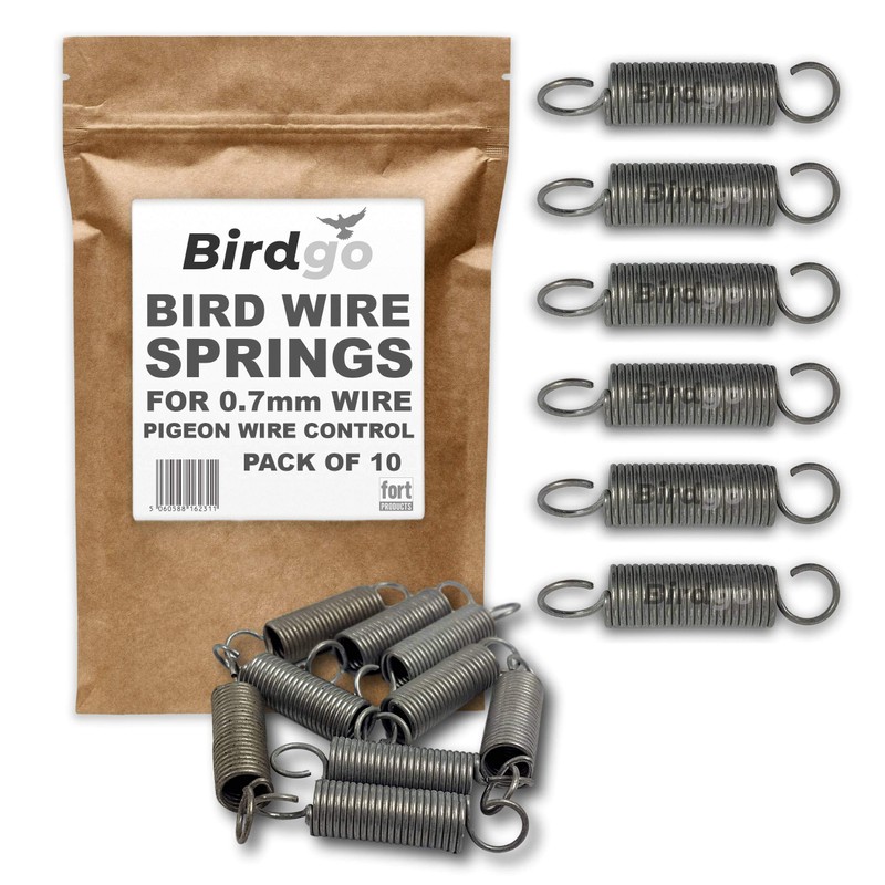 - SPRINGS FOR POST & WIRE SYSTEMS - Birdgo stainless steel springs are made specifically for tensioning wire between posts on an anti-pigeon control system. The springs firmly hold the wire under tension, allowing for flexibility and sagging in temperature fluctuations and wire movement by determined birds. Without springs in place, the bird wire system will lose tension over time, failing to deter unwanted birds.