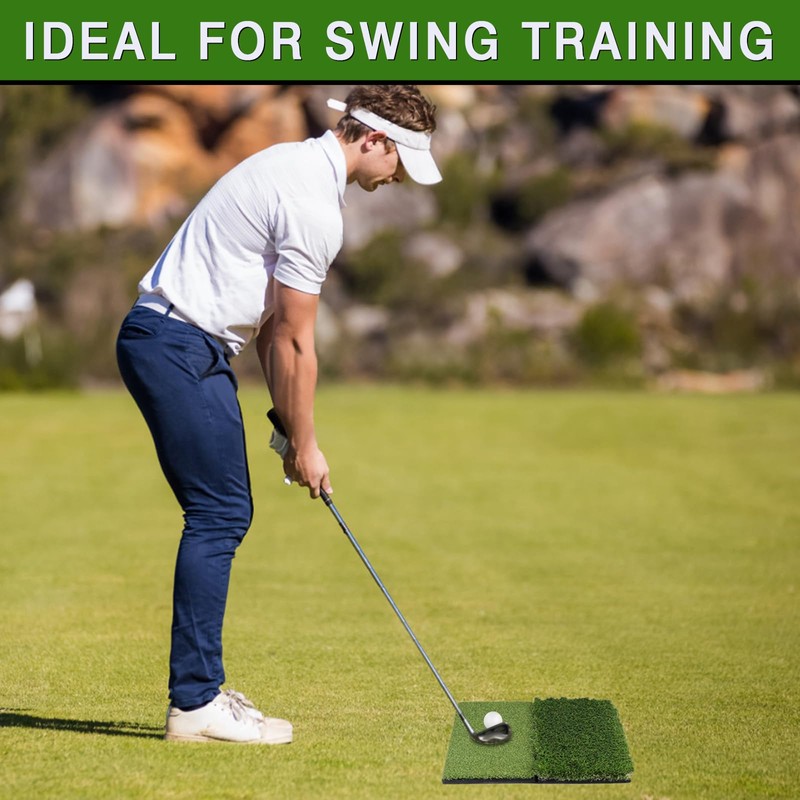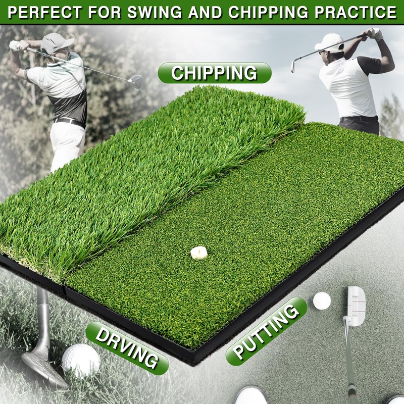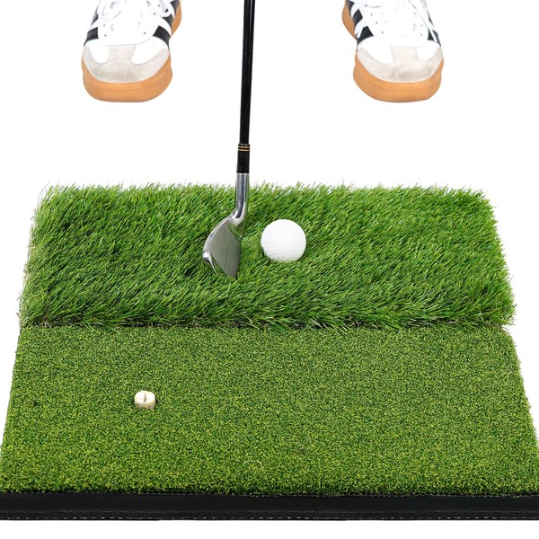 - DIVERSE PRACTICE OPTIONS: Dual-turf (Rough turf+ Fairway turf)golf hitting mat provides golfers with a wide range of practice options. It can simulate different types of fairway conditions and swing techniques on the same golf mat.