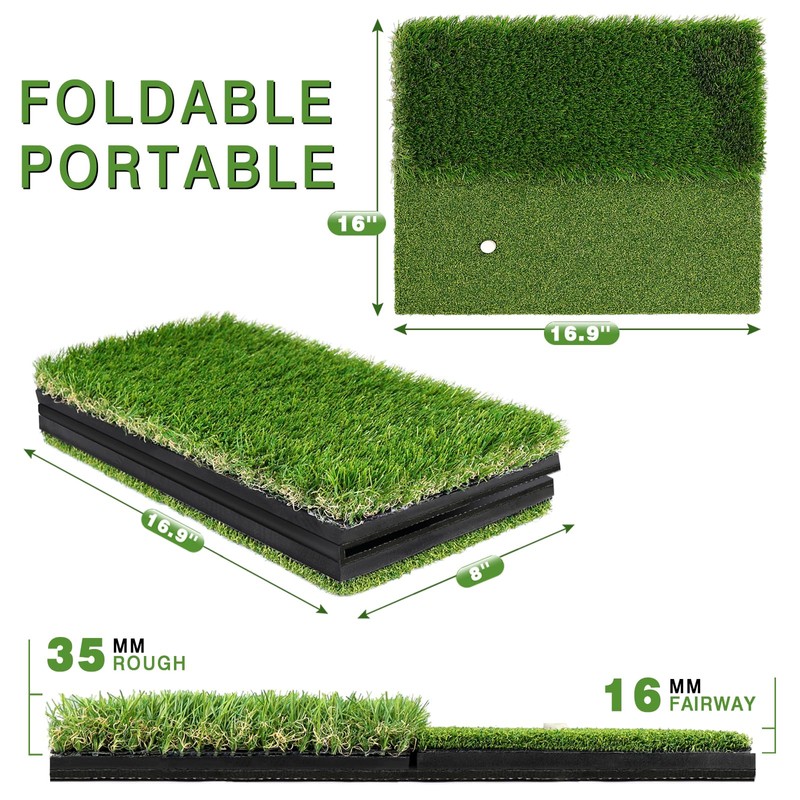 - FOLDABLE DESIGN: Dual-turf golf hitting mat features a foldable design for easy carrying and storage.