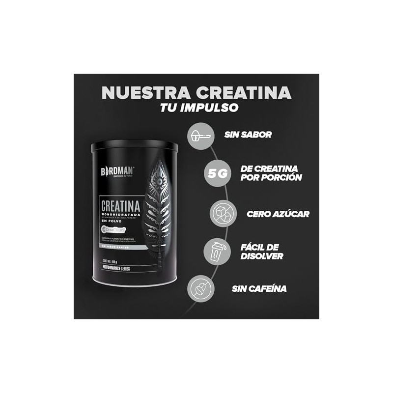 Birdman Creatina Monohidratada de Alta Pureza En Polvo Sin Sabor, Preworkout, Alto Rendimiento | 90 Servicios | 450g.