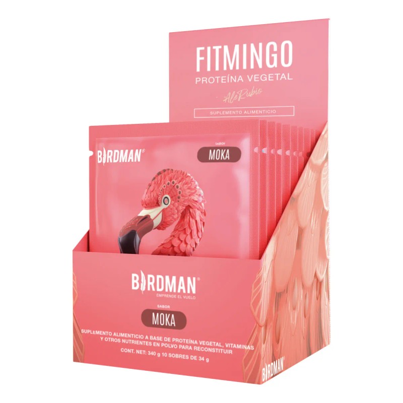 Birdman Fitmingo Proteína Vegana con Fit, Beauty y Balance Blends. Con Ácido Hialurónico, Inositol, Potenciadores de Colágeno, Vitamina C, Vitamina D3, Zinc, Svetol | Sabor Moka, 10 Sobres