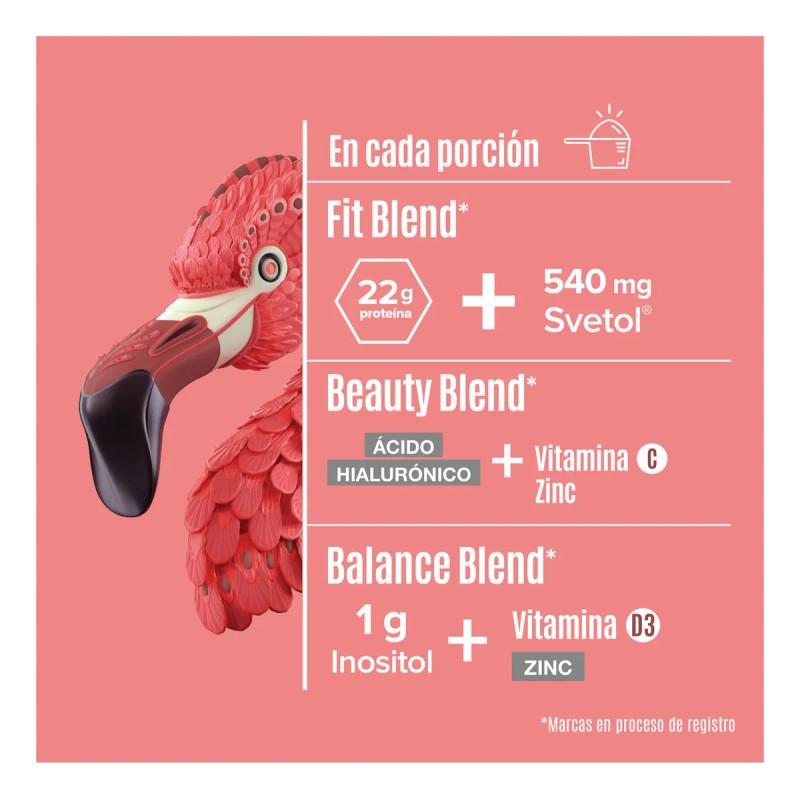 - based; además de Optiziome P3 Hydrolyzer® que apoya una mejor digestión y vitamina C + Zinc para complementar la producción natural de colágeno en el cuerpo. Fitmingo está diseñada para apoyar tu ingesta de nutrientes diarios. Es libre de lácteos, gluten y soya, con enzimas que apoyan una mejor absorción de la proteína. Características: Svetol: Marca registrada de extracto de café verde descafeinado, con estudios que muestran su apoyo para la quema de grasas en el cuerpo. Vitamina C PureWay C: Marca registrada de Vitamina C 100% natural. Fabricada con ingredientes 100% veganos, non