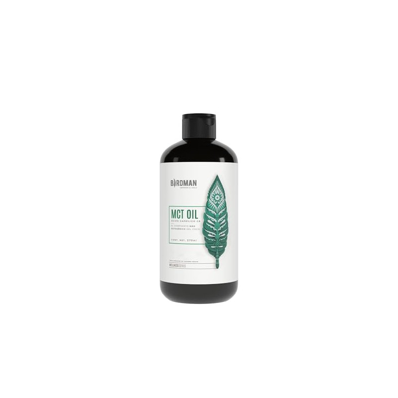 Birdman MCT Oil Acido Caprílico C8 100% Natural Puro De Coco, Keto y Paleo Friendly, Boost De Energia y Concentracion, Ideal en Cafe y Ensaladas, Sin Sabor | 18 Porciones | 270ml