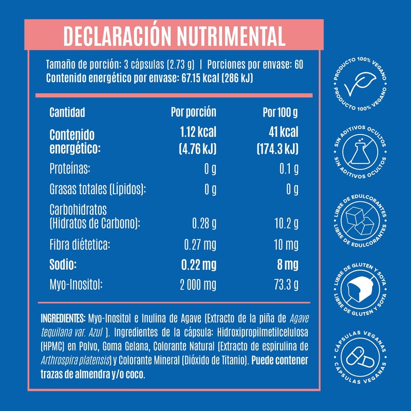 - FÓRMULA LIMPIA Y NATURAL: Cápsulas de Myo Inositol con 2000 mg por porción, un suplemento premium elaborado con una fórmula limpia sin aditivos ocultos. Diseñado para integrarse fácilmente a tu rutina diaria, ideal para quienes valoran la calidad en su nutrición.