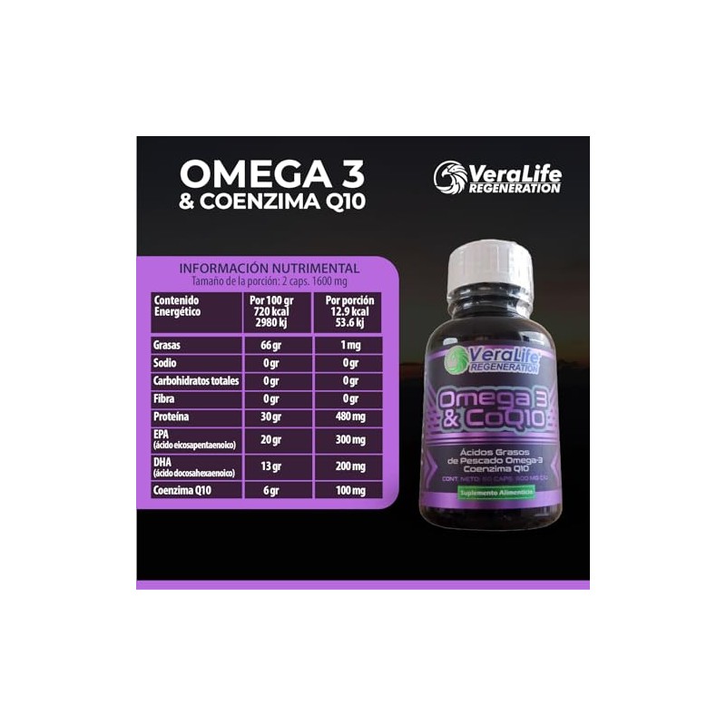 VERALIFE REGENERATION - Suplemento Omega 3 y Coenzima Q10-60 Cápsulas | Vitaminas con Ácidos Grasos de Pescados Omega-3 y Coenzima Q10 | Suplemento Alimenticio Sin Azúcar y de Calidad Premium | VeraLife. 🏆 Reconocido por su excelente relación calidad-precio. Diseño ergonómico y funcionalidad excepcional. 📦 Entrega rápida y segura. Ideal para quienes buscan lo mejor en calidad y estilo. Producto auténtico con satisfacción total asegurada. ¡No te quedes sin el tuyo y aprovecha esta oportunidad única!