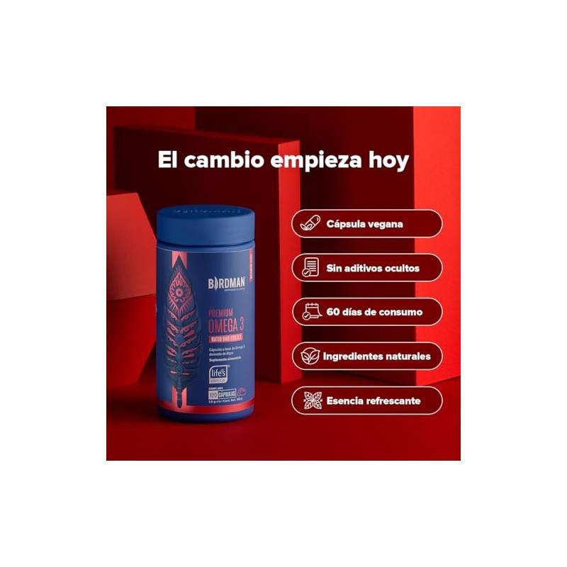 BIRDMAN - Birdman Premium Omega 3 a base de Algas (Ratio DHA:EPA 4:1) | Fórmula 100% Vegetal | Libre de Contaminantes y Aditivos | Cápsula Vegana | Suplemento Alimenticio | 60 Porciones | 120 Cápsulas. 🏆 Reconocido por su excelente relación calidad-precio. Tecnología avanzada y rendimiento superior. ⭐ Miles de reseñas positivas. Ideal para quienes buscan lo mejor en calidad y estilo. Producto auténtico con satisfacción total asegurada. ¡No te quedes sin el tuyo y aprovecha esta oportunidad única!