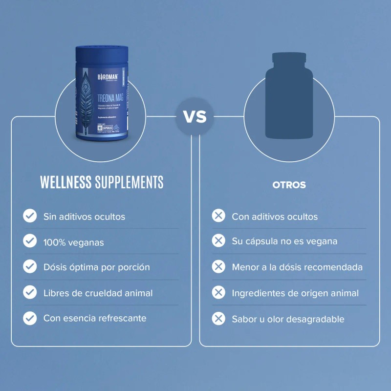 Birdman Treonato de Magnesio 160 mg | Sin Aditivos | 30 Porciones | 90 Cápsulas