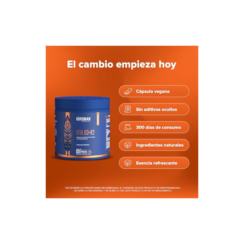 BIRDMAN - BIRDMAN Vitamina D3 + K2 | Suplemento Alimenticio de Origen Vegetal | Fórmula Limpia Sin Aditivos | Cápsula Vegana | Esencia Refrescante | 300 Porciones | 300 Cápsulas. ✅ Diseño innovador que supera las expectativas. Materiales de alta gama y acabados premium. 🏆 Recomendado por expertos. Ideal para quienes buscan lo mejor en calidad y estilo. Producto auténtico con satisfacción total asegurada. ¡No te quedes sin el tuyo y aprovecha esta oportunidad única!