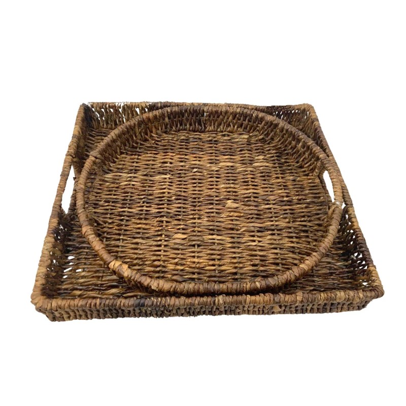 Birdrock Home Handwoven Abaca Serving Tray Set Woven 2Pc Set Integrated Handles