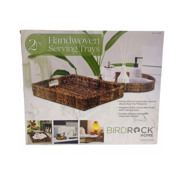 The BirdRock Home Handwoven Abaca Serving Tray Set, a beautifully crafted collection that brings natural elegance to your home. Sustainably sourced from the Philippines, these trays are meticulously handwoven from abaca fibers, known for their strength and durability. Each piece in the set showcases the unique texture and warmth of natural materials, making them perfect for serving guests or adding a decorative touch to your space.